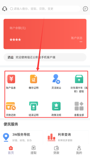 宿迁公积金app提供信息查询、政策咨询、个人提取、贷款申请、贷款还款、信息变更等业务功能。