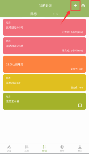 2、在我的计划页点击右上角加号按钮,进入制定计划的编辑界面。