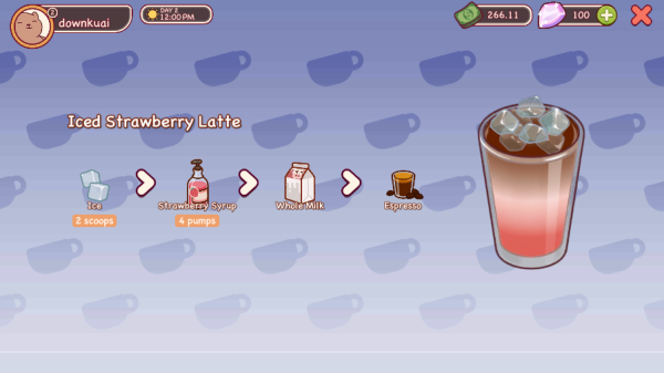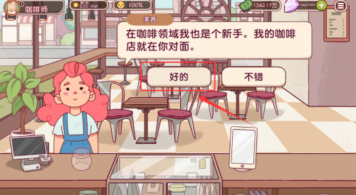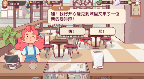 1.进入游戏后点击与顾客的对话,完成对话后进入制作咖啡制作页面