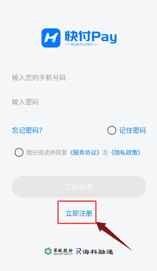 2、在登录页点击下方“立即注册”按钮,即可跳转至注册页面。