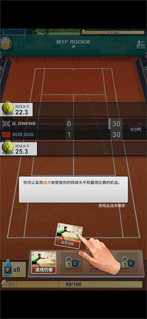 在比赛中你可以任意使用战术来提高你的网球水平和赢得比赛的机会