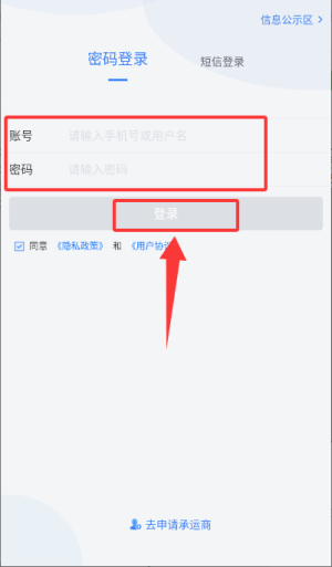 1、应用市场下载应用并安装成功后,支持密码登录和短信登录两种模式